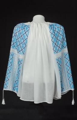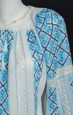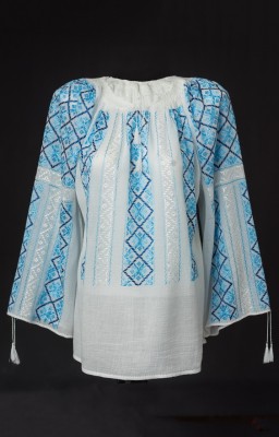 Each Romanian blouse is rich embroidered with traditional motifs passed through generations. The embroidery is manually made and it took three weeks of embroidery work to complete it.