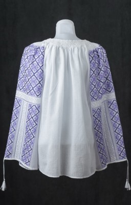 Fabric for this Romanian embroidered blouse is fine gauze cotton.