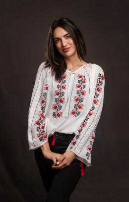 Authentic Romanian folk blouse manually embroidered available in M size. - Only one blouse available.