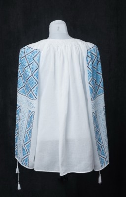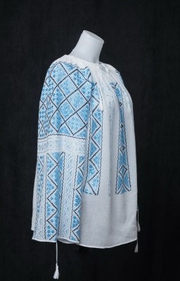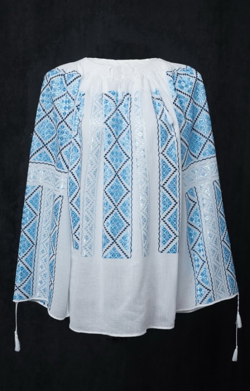 Aceasta ie romaneasca este brodata in totalitate manual pe panza topita din bumbac cu motive nobile specifice zonei Munteniei.