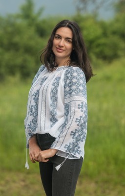 Va oferim aceasta delicata ie traditionala realizata in zona Breaza, Prahova avand un model de broderie geometric transmis din generatie in generatie.