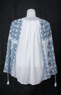 IA romaneasca brodata manual cu motivul "roata norocului".