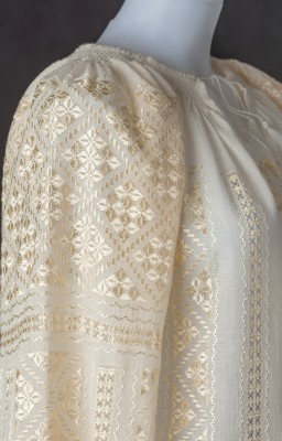 Ie traditionala brodata manual cu motive geometrice complexe.